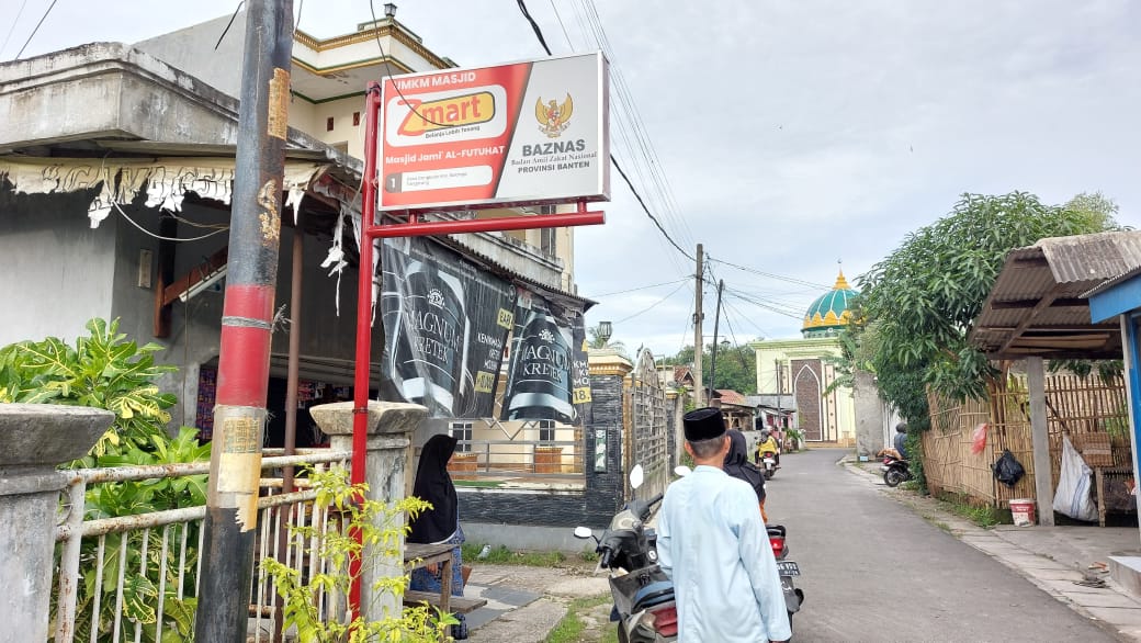 Pendamping Program Z-Mart DKM BAZNAS Provinsi Banten melakukan kegiatan monitoring kepada mustahik atas nama Sobri yang menjalankan usaha Z-Mart di lingkungan Masjid Jami Al-Futuhat Kampung Cangkudu, Desa Cisoka, Kecamatan Balaraja, Kabupaten Tangerang pada 16 Juli 2025.